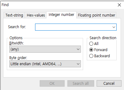 Byte order는 Little Endian으로 지정해야함에 주의하자.