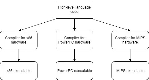 즉, interpreting overhead가 없다. - Protability가 좋다.