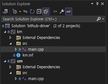 Build가 성공적으로 되면 프로젝트 폴더에 build 폴더에 km.sys와 um.exe가 생성되었을 것이다.