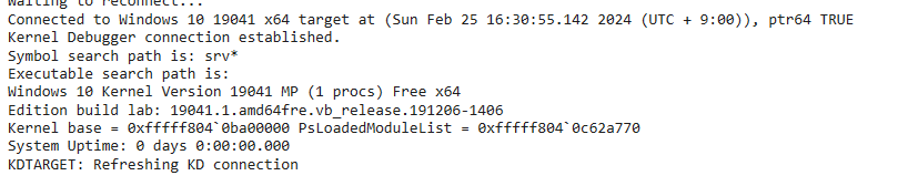 WinDbg에서 serial port 연결이 잘되었음을 알 수 있다.