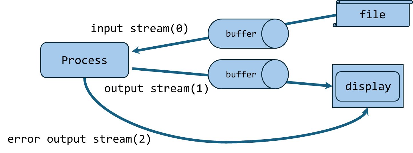예를 들어, 출력 리다이렉션을 한다면 위 그림에서 출력 스트림이 모니터가 아니라 다른 프로그램을 향하게 할 수 있다.