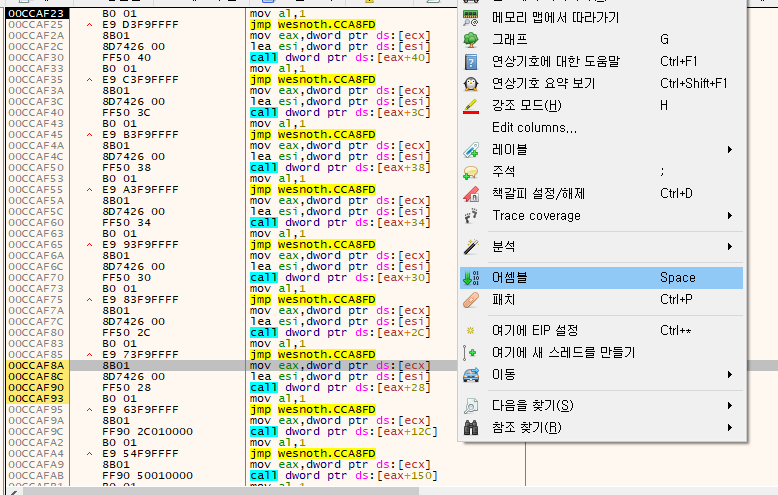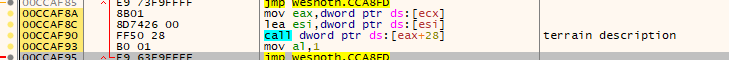 mov eax, dword ptr ds:[ecx]와 lea esi, dword ptr ds:[esi]는 원래 terrain description 코드다.