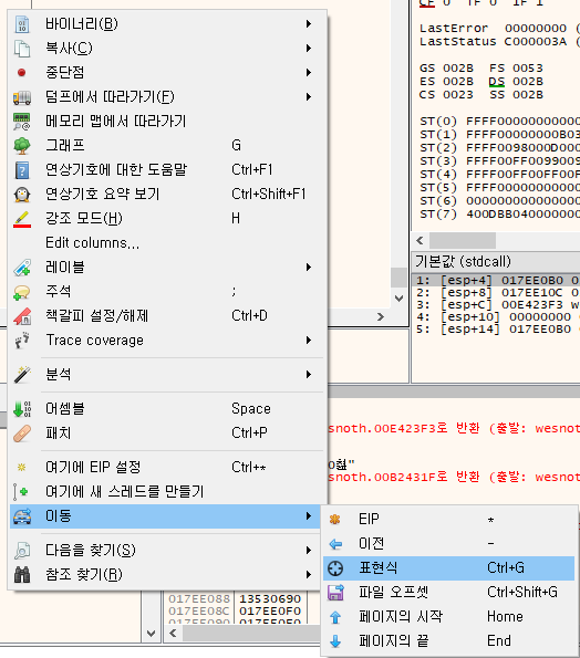 우클릭 후 이동 - 표현식을 이용하면 0x134360E로 편하게 이동할 수 있다.